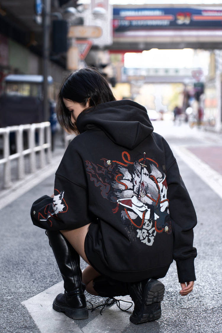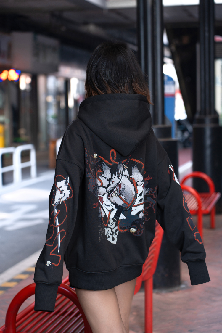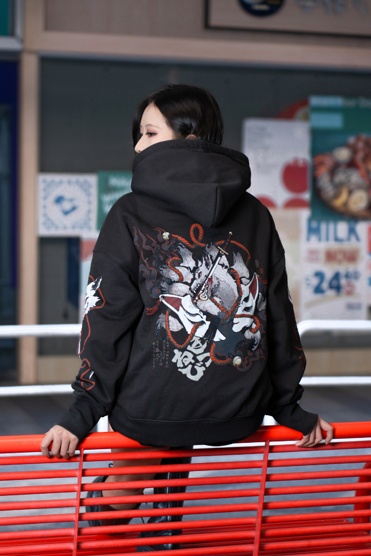 Tread carefully around your elder's old relics, you never know what may inhabit those… Awaken the spirit of the fox with the Kitsune Unmasked hoodie. Featuring bold, mystical artwork that fuses ancient folklore with modern anime streetwear. Crafted for comfort, designed for intrigue, and built for those who dare to uncover what lies beneath.